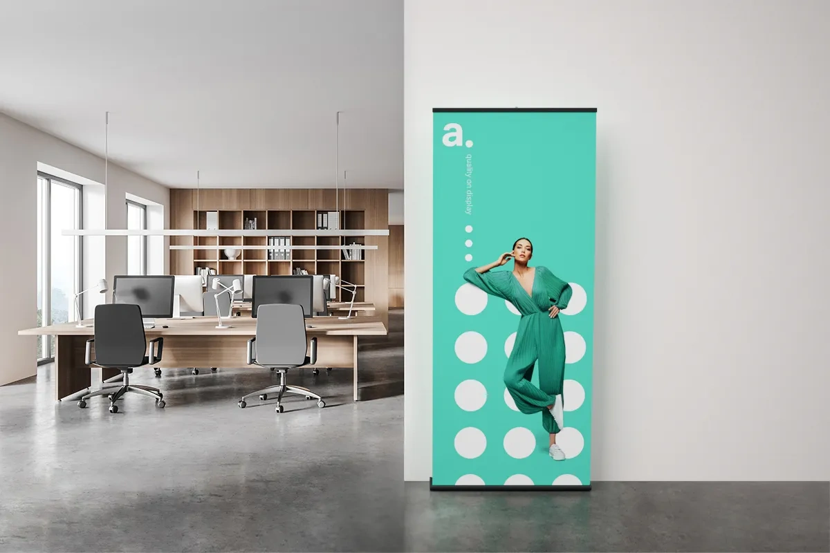 adStand Premium is an ideal roll up banner for various marketing activities. It features a wide, stable base, and its robust construction ensures durability, while the option to change prints makes it multifunctional.
