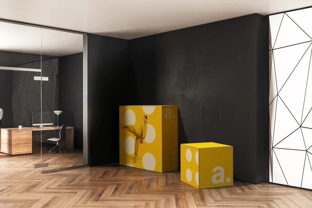 adFrame CTF è un pannello tessile a forma di cubo. Grazie alla possibilità di facile sostituzione delle stampe e al montaggio intuitivo, è la soluzione ideale per ogni negozio o salone di servizi.