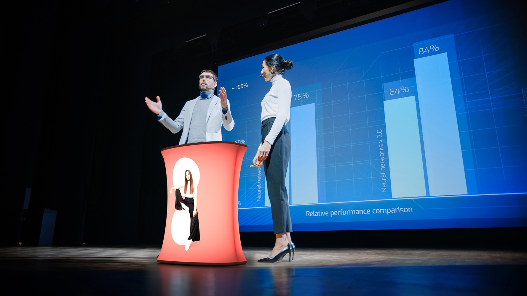 Werbetisch bei Konferenzen: Big Quick LED eignet sich hervorragend für die Organisation von Konferenzen. Ein solcher Werbetisch hebt den Bereich hervor, in dem die Redner auftreten, und dank der LED-Beleuchtung wird zusätzliche Aufmerksamkeit auf sie gelenkt.