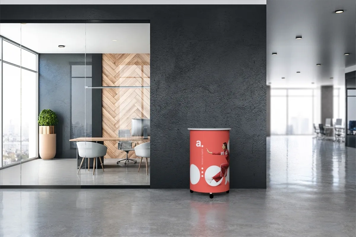 adTribune Hit Mini è un bancone espositivo che si distingue per la sua struttura compatta su ruote. È una soluzione pratica e mobile che si rivela efficace durante promozioni e degustazioni, anche in spazi limitati.