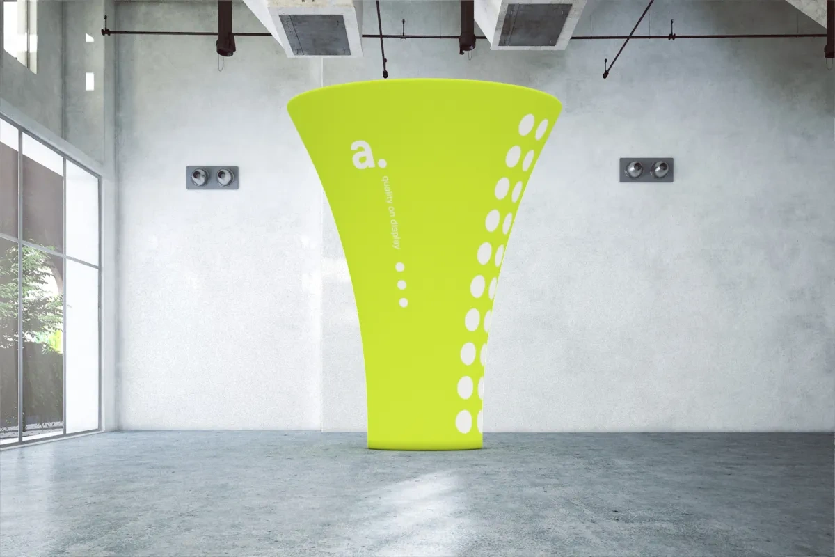 Fiere: la forma unica di adWall Vario Cone distingue il tuo stand rispetto alla concorrenza, attirando clienti potenziali.