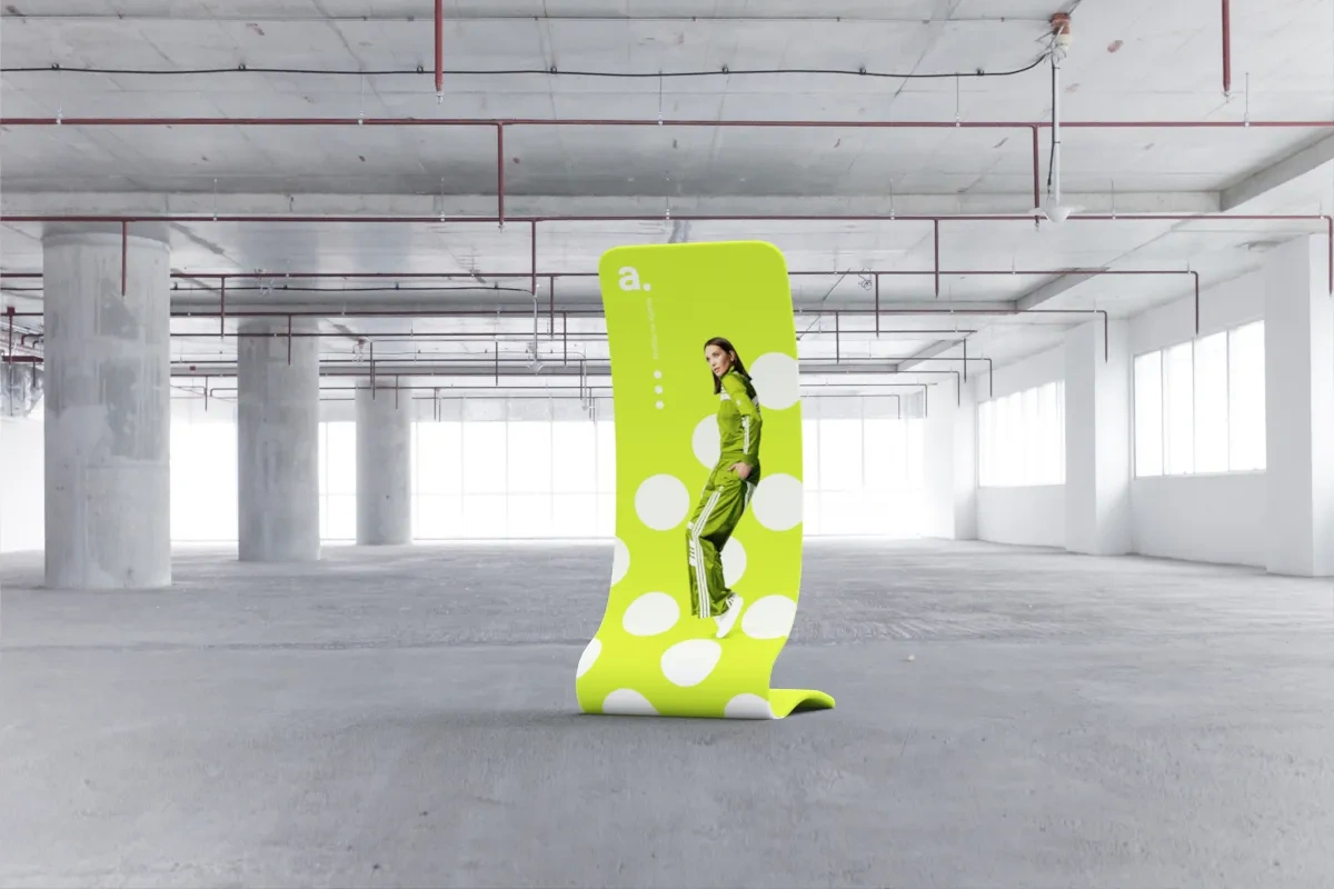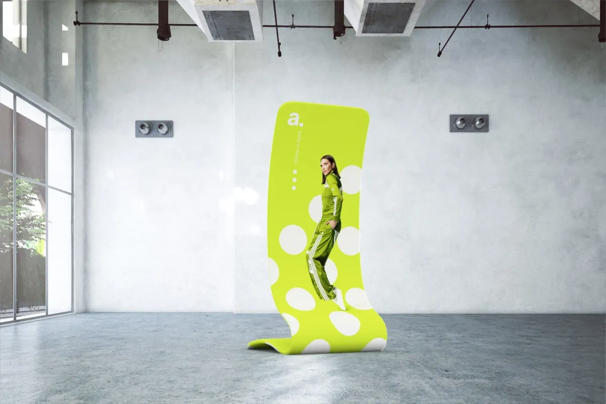 adWall Vario S is a promotional stand with a curved shape that effectively captures the audience's attention. With interchangeable prints and a lightweight structure, it is a practical and portable promotional tool.