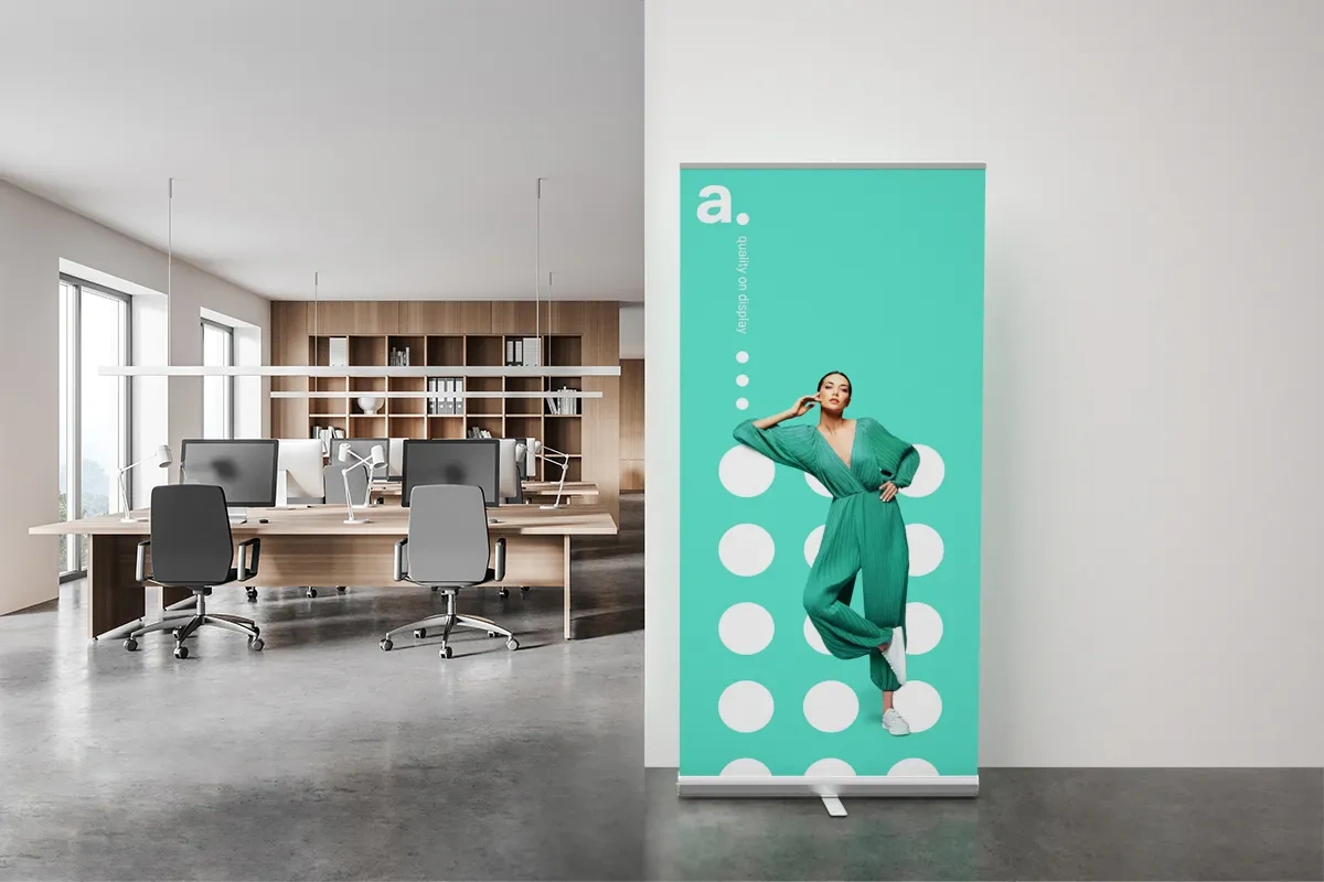 adStand Lux is a sturdy roll-up banner that will serve you well during numerous advertising campaigns. It features a durable aluminum construction and is available in three sizes.