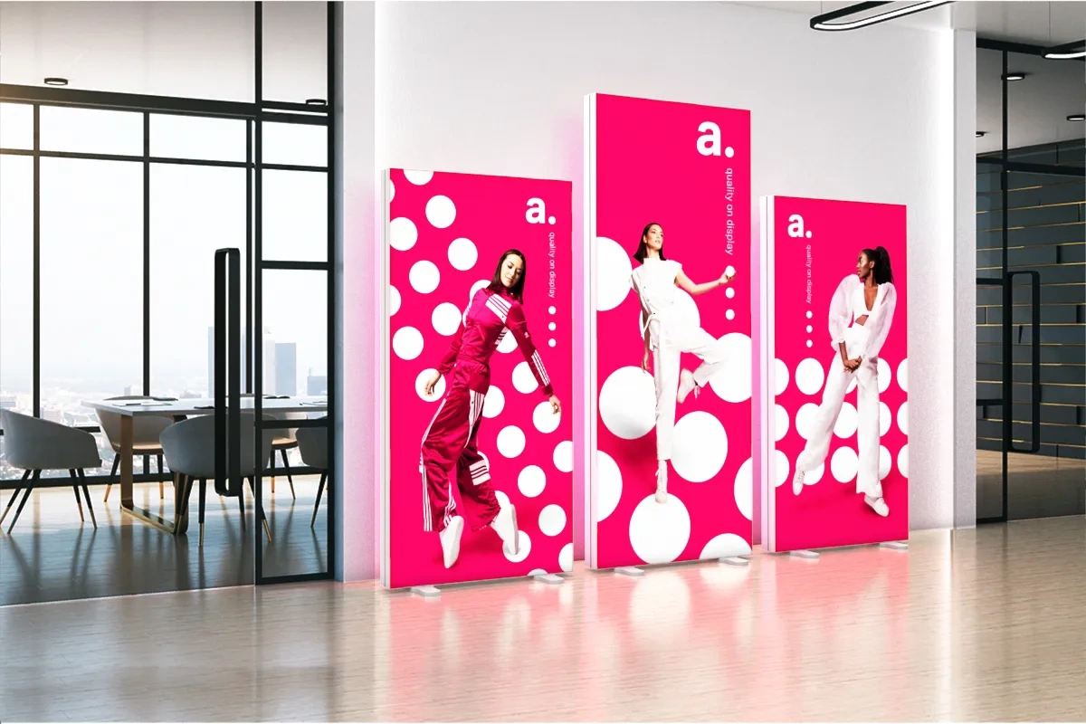 Aranżacja przestrzeni biurowej: lightbox LED sprawdzi się jako nośnik informacji w biurze. Co więcej, postawiony w pozycji horyzontalnej, może posłużyć jako space divider.