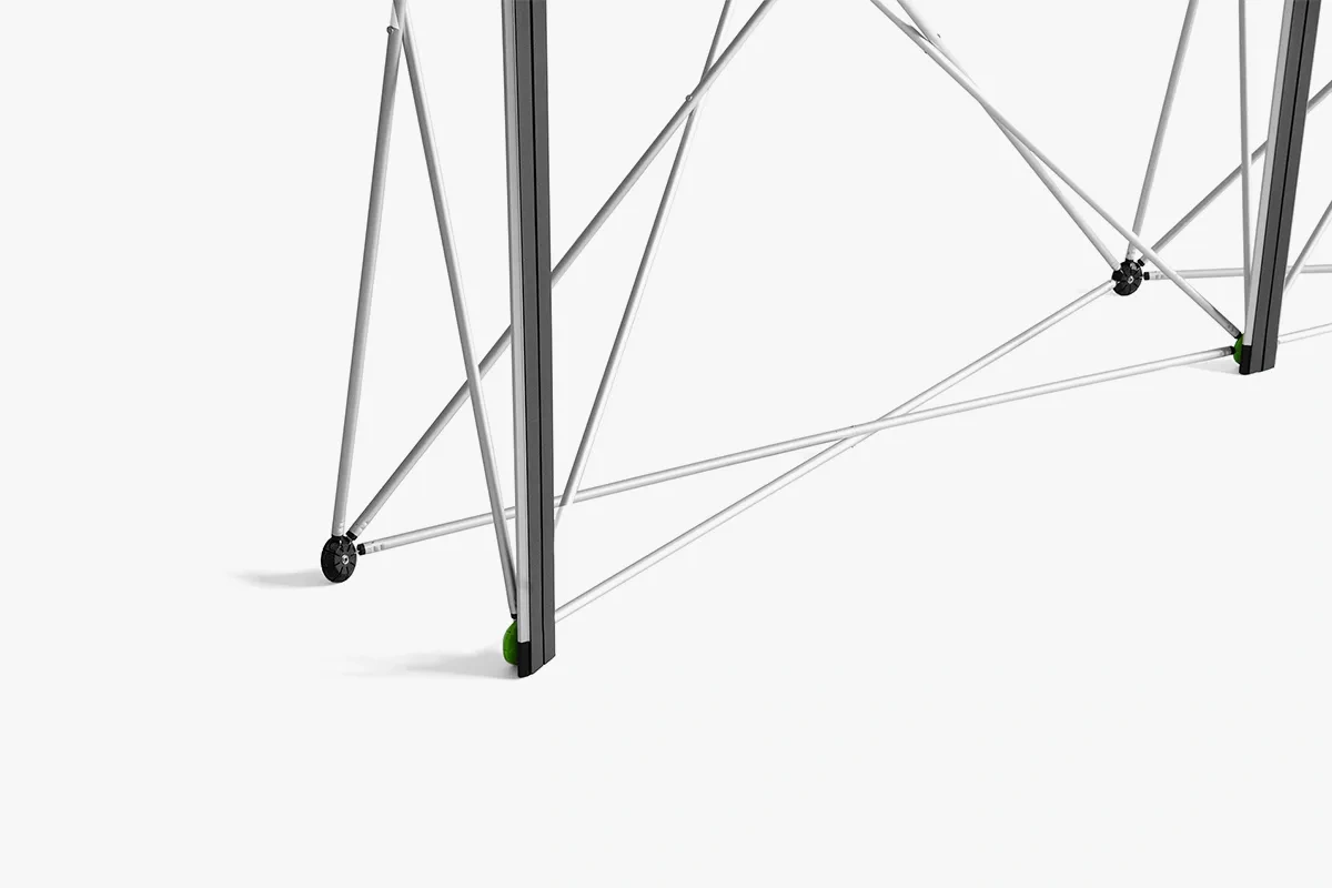 Element des Werbestandes: Die magnetische Wand dient als Hintergrund für den Firmenstand auf Messen oder anderen Werbeaktionen. Die umfangreichen Kreuzverstärkungen verstärken die Konstruktion. Dadurch bleibt sie stabil, selbst wenn sich eine Menschenmenge um den Stand versammelt.