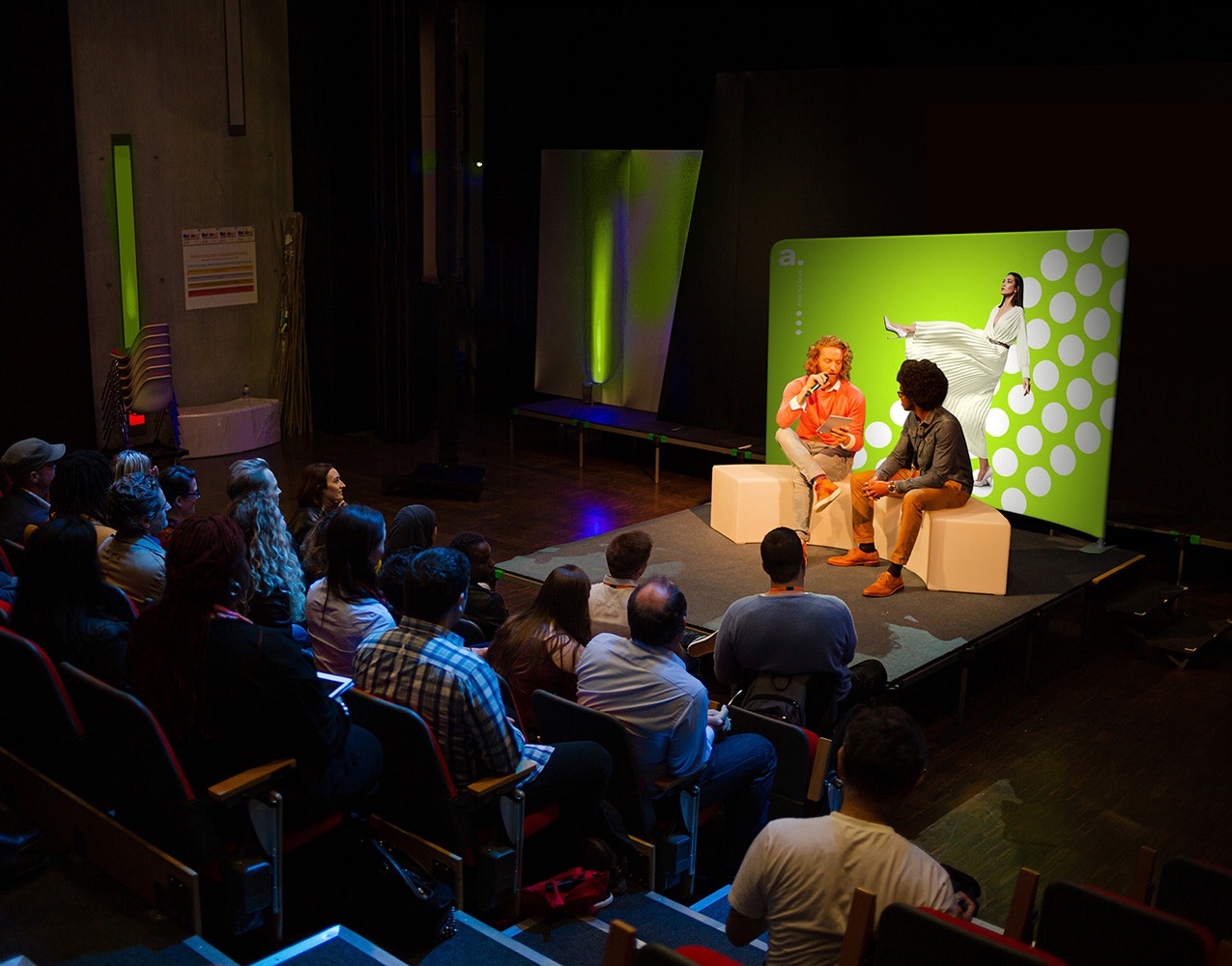 Konferenzen: Das Produkt adWall Vario Gebogen Premium eignet sich für Konferenzen. Redner können vor der Wand auftreten, wodurch die Botschaft der Veranstaltung zusätzlich verstärkt wird. Außerdem kann sie als Interviewwand für Gespräche mit Teilnehmern oder Organisatoren dienen.