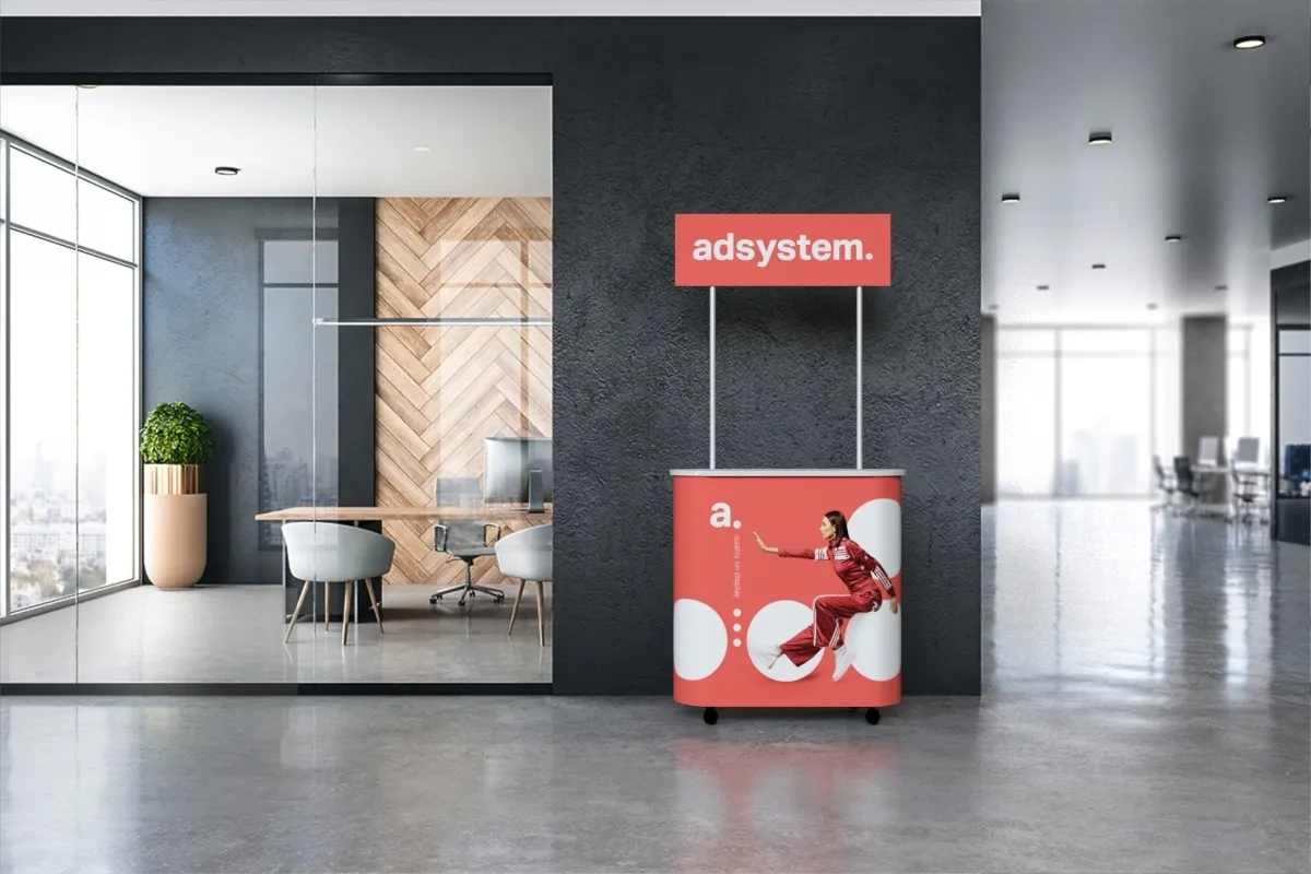 Eventy promocyjne: stoisko adBox Elypse Mini zapewnia profesjonalną i atrakcyjną przestrzeń promocyjną, którą można łatwo skonfigurować i dostosować do specyfiki wydarzenia.